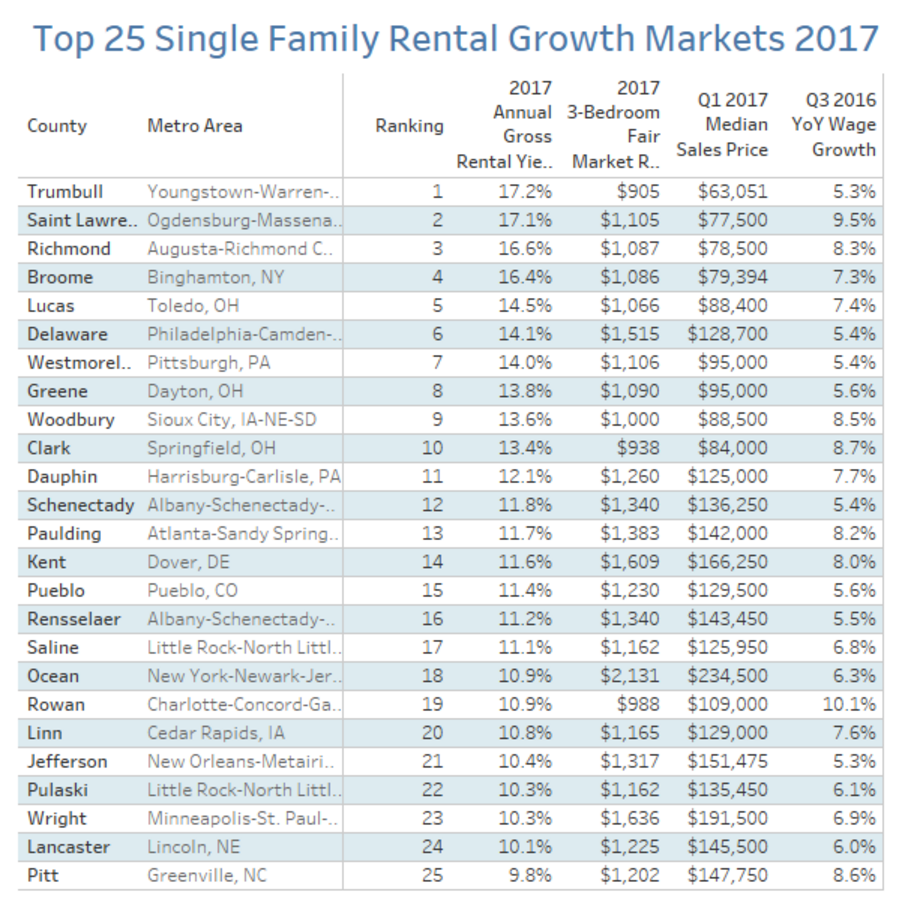 The World Property Journal and ATTOM Data recommend this list for fast rental growth rates in 2017.